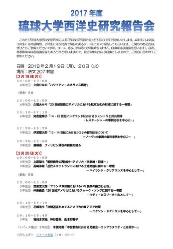 2月19~20日に、下記のような企画を開催しました。 4年次は卒論、3年次は卒論構想、2年次は関心あるテーマの紹介をそれぞれ報告。当日までにレジュメの用意(印刷を含む)ができておらず、時間通りに開始できなかったことなど、段取りにいくつか課題が残っ…