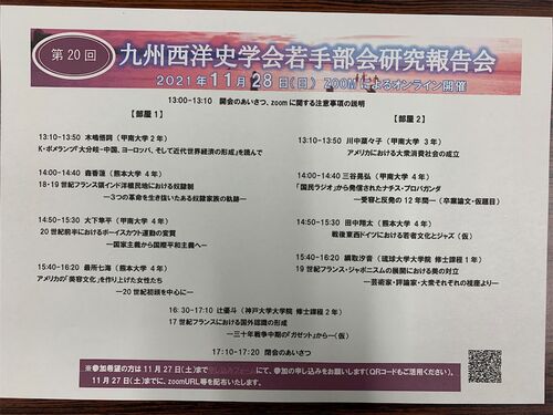 第20回九州西洋史学会若手部会のプログラムが完成しました!11月28日(日)@オンラインです。九州と言わず、全国各地からのご参加を心待ちしております。うちの院生も発表いたします。別件があって私は参加できないけど、他流試合は大事です。是非とも色々と議…